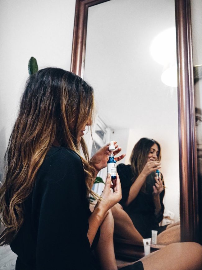 Seit einigen Wochen teste ich nun die „HYALU B5“ Anti-Aging Serie von La Roche-Posay. Ich benutze morgens ein Serum und eine Creme und die Produkte fühlen sich so gar nicht nach Anti-Aging an. Was ich damit meine? Ich habe sehr trockene Haut, die teilweise sogar schuppt und trotzdem ab und an zu Unreinheiten und Irritationen neigt. Da La Roche-Posay dafür bekannt ist, gerade für empfindliche und unreine Haut gut geeignet zu sein, hatte ich direkt ein gutes Gefühl. Und dieses hat sich bestätigt. Das Serum ist sehr dickflüssig (fast wie ein Gel) und polstert meine Haut direkt auf. Es lindert nicht nur kleine Fältchen mit Sofort-Effekt, sondern bringt auch müde und fahle Haut zum Strahlen. Die Creme nutze ich on top. Auf der Verpackung steht, dass man beide Produkte morgens und abends auftragen soll, aber mir reicht es einmal am Tag. Zudem eignen sich beide Produkte (auch geschichtet) sehr gut als Make-Up Unterlage, da sie extrem gut einziehen und keine Flecken verursachen, wenn man sich danach schminkt. Trotzdem ist die Haut gut „durchfeuchtet“ und strahlt. Da ich so trockene Haut habe, benutze ich dann abends lieber eine richtige reichhaltige Pflege oder ein Öl, welches über Nacht einziehen kann.