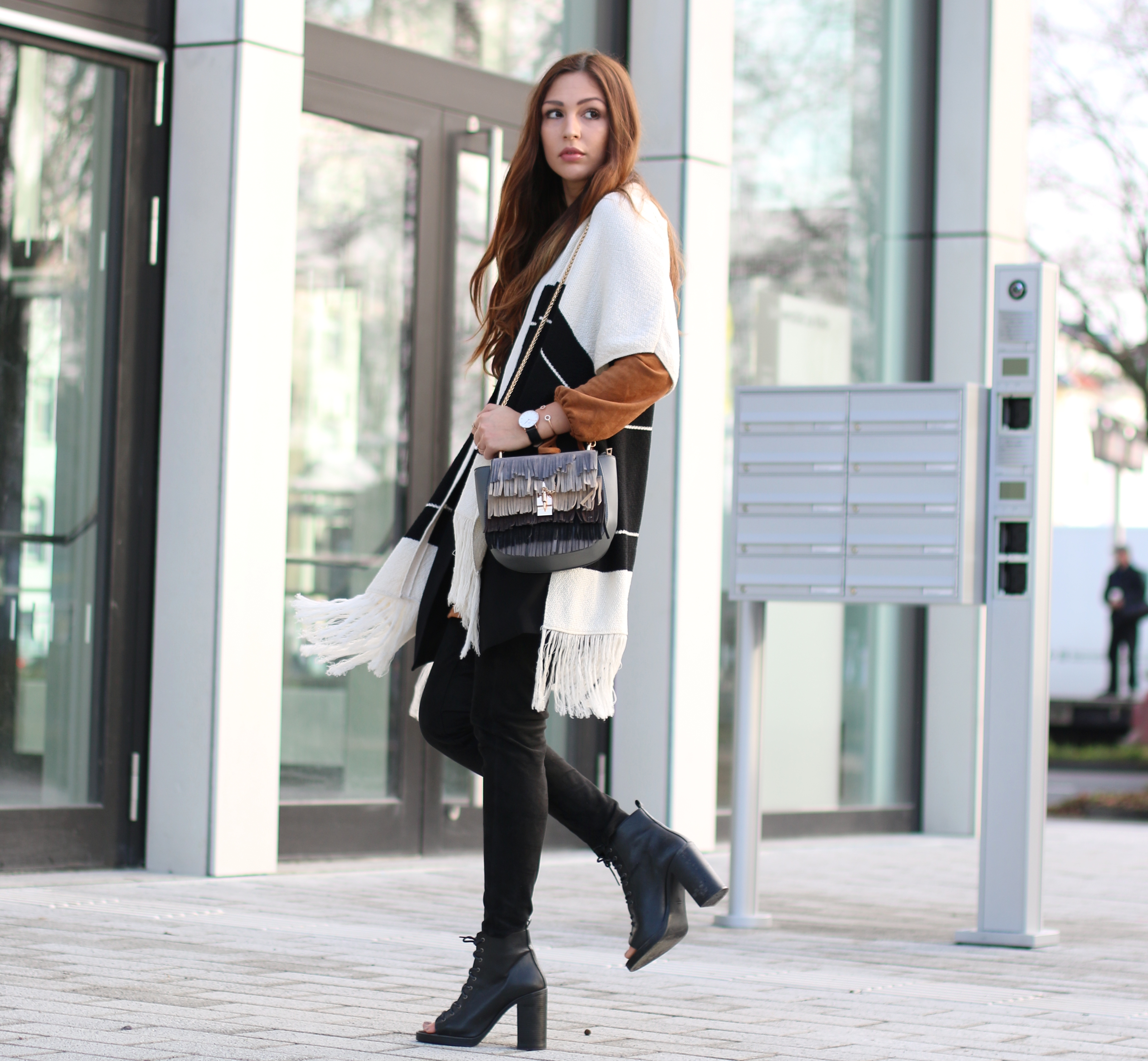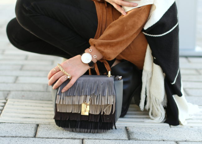 Heute geht es um mein neues Wildlederkleid (Kunsleder, aber super angenehmes Material, gibt es auch in schwarz). Ich freue mich schon, es im Sommer im Hippie Stil zu tragen, aber ich konnte natürlich nicht abwarten und wollte es auch jetzt im Winter schon ausführen. Obwohl ich eigentlich nicht gerne viel Leder zusammen trage, passt es perfekt über schwarzen Wildleder-Treggins. Mit Weste und Poncho kann ich es bei den milden Temperaturen im Dezember momentan sogar ohne Jacke tragen. Nichtmal die offenen Schuhe waren mir zu kalt, das ist wirklich Wahnsinn. Zum Fotos machen ist das Wetter echt praktisch, aber um so richtig in Weihnachtsstimmung zu kommen, ist es natürlich ein Killer und ich hätte sehr gerne weiße Weihnachten gehabt. Aber ein paar Tage haben wir ja noch.. :) Die tolle Fransentasche ist mal wieder von FTW The Shop. Bald ist es soweit, und ich werde nur noch Taschen von den Mädels tragen. Su & Chris schaffen es immer wieder, Knaller-Modelle zu finden die ich haben MUSS. Es lohnt sich also definitiv mal in ihrem Shop vorbei zu schauen! x. Kira